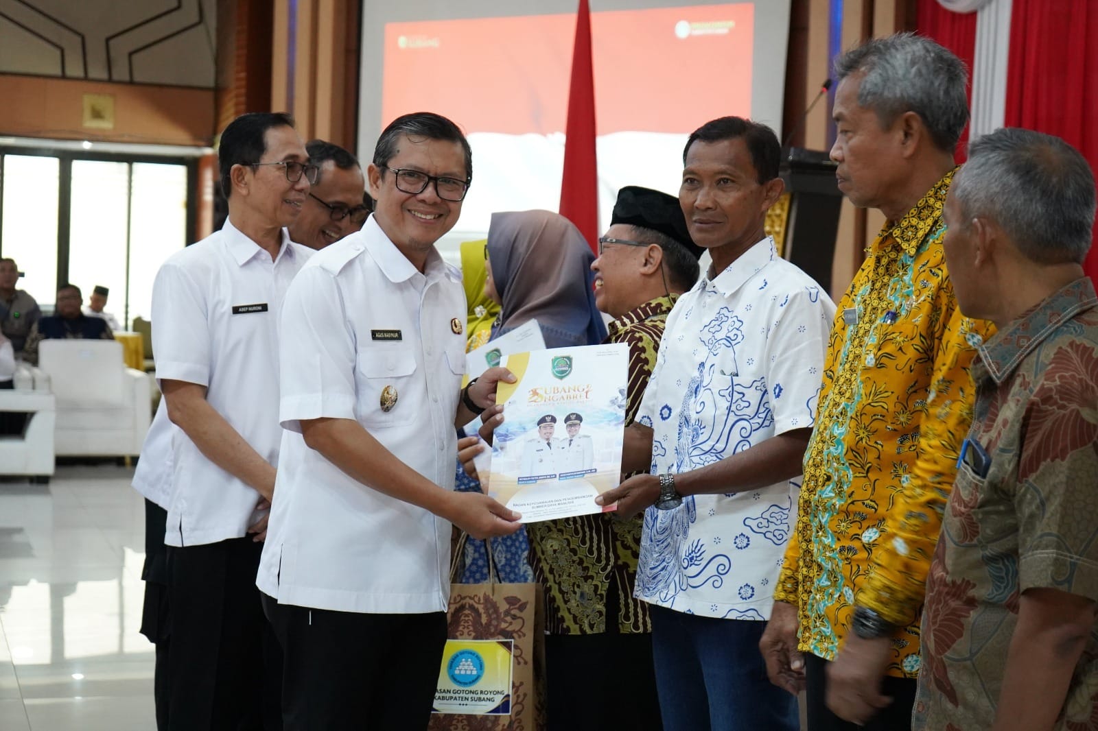 Turut hadir dalam kegiatan tersebut Sekretaris Daerah Kabupaten Subang, para Staf Ahli Bupati, Kepala Dinas Perhubungan, Kepala Dinas Kependudukan dan Pencatatan Sipil, Kepala Dinas Ketahanan Pangan, perwakilan Bank Jabar Subang, PT Taspen Cabang Bandung, serta Ketua Yayasan Gotong Royong.