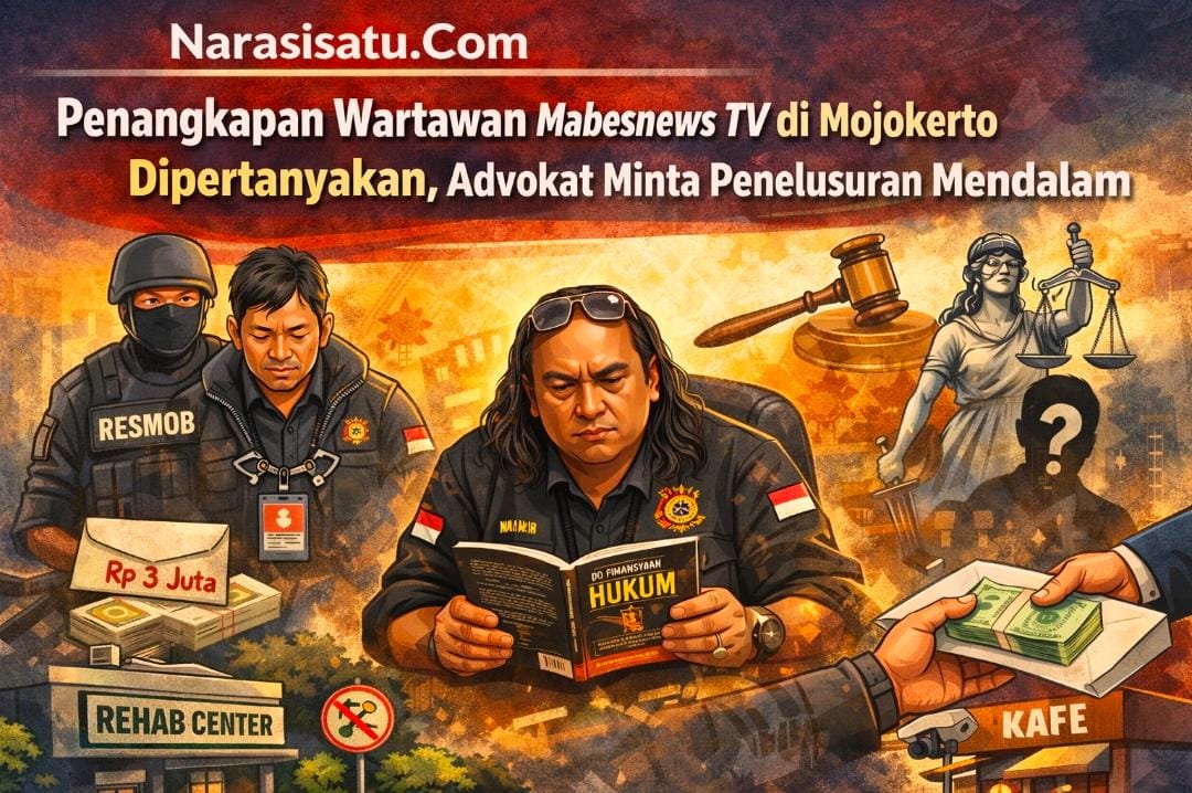 SURABAYA, Narasisatu.Com – Penangkapan seorang wartawan Mabesnews TV bernama Muhammad Amir Asnawi (42) oleh tim Resmob Polres Mojokerto menuai sorotan dari kalangan advokat. Advokat asal Surabaya, Dodik Firmansyah, SH, menilai terdapat indikasi unsur jebakan dalam proses penangkapan tersebut.