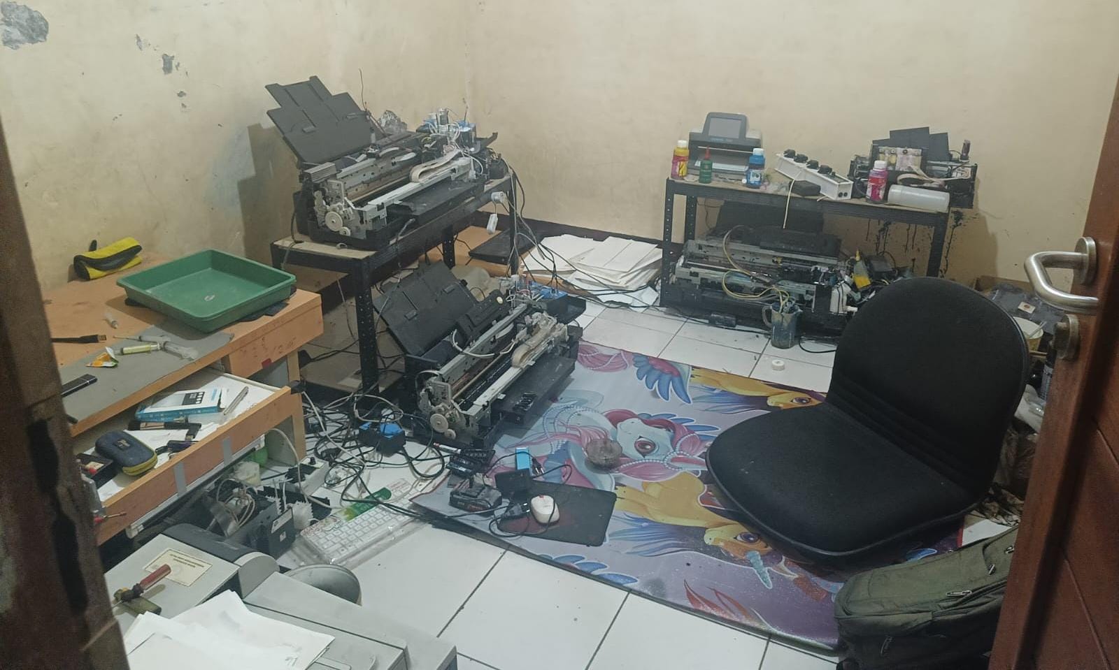 Barang bukti yang diamankan antara lain mesin printer, satu set komputer, alat timbang uang, ribuan lembar kertas dupon sebagai bahan baku, mesin pencetak ultraviolet, oven pengering warna, alat press, hingga pewarna dan alat pemotong uang palsu. Selain itu, petugas juga menyita uang palsu yang sudah siap edar.