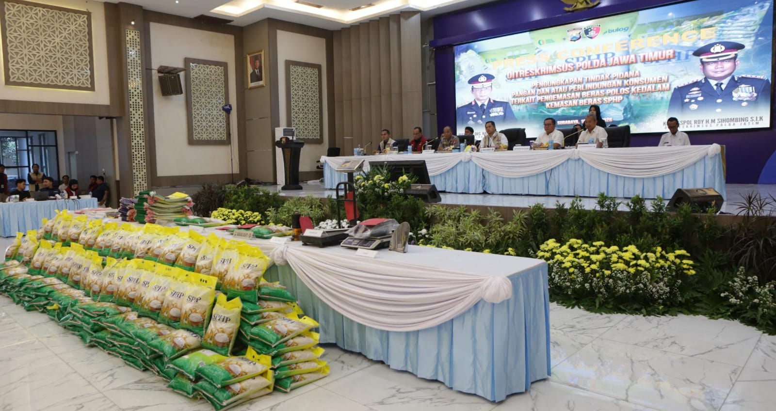 SURABAYA, Narasisatu.Com – Direktorat Reserse Kriminal Khusus (Ditreskrimsus) Polda Jawa Timur mengungkap kasus dugaan tindak pidana di bidang pangan dan perlindungan konsumen terkait peredaran beras kemasan program Stabilisasi Pasokan dan Harga Pangan (SPHP) yang tidak sesuai ketentuan.