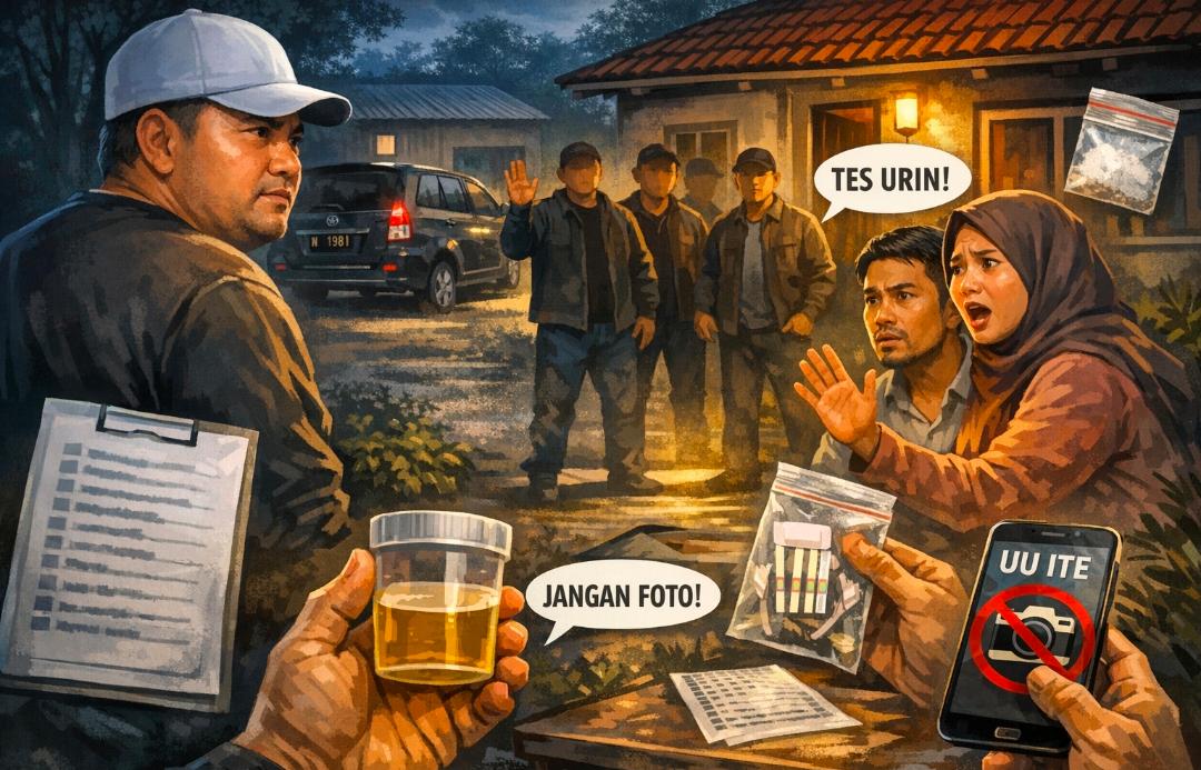 Kedatangan mereka bahkan disertai alat tes urin dan diduga berkaitan dengan dugaan keterlibatan seorang warga dalam penyalahgunaan narkoba, namun tanpa menunjukkan identitas resmi secara terbuka.
